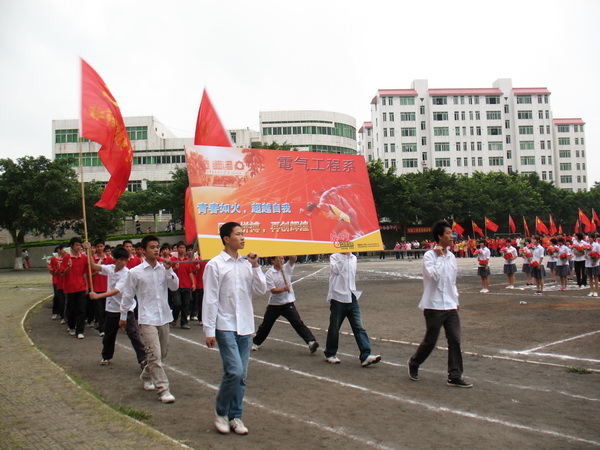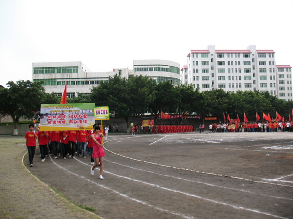清风送爽,艳阳高照,为庆祝2008北京奥运会圆满结束,同时也为庆祝祖国即将到来的60周年华诞, 5 月 16 日 ,我校第十九届田径运动会在学校与动场隆重举行。在全体运动员.裁判员、工作人员与全校师生的共同努力下,一场“文明,热烈,精彩,圆满” 的体育盛会圆满落下序幕。开幕式上,陈桐副校长作了热情洋溢的致辞。于锦杰校长宣布本届校运会开幕。