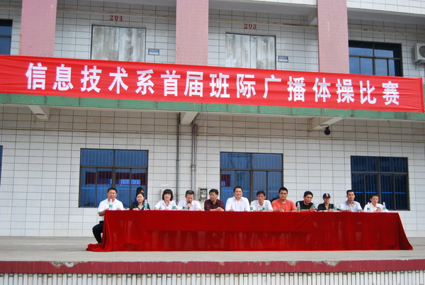主席台上5名体育老师紧张地工作着,操场上的比赛在紧凑而有序地进行。赛场上不时出现令人振奋、赏心悦目的画面。整齐的队列,统一的服装,认真、有力的体操动作,烘托出热烈的赛场气氛,经过一个多小时的激烈角逐,本次广播操比赛产生了前六名:80烹饪班和08人力资源班以93分的高分夺冠,08物流(1)班以90分的成绩获得第二等奖。08文秘、08广告班和08高级物流班荣获第三等奖。最后,由黄继乐书记宣布了比赛的结果,系领导当场为获奖班级颁发了奖状和奖金。