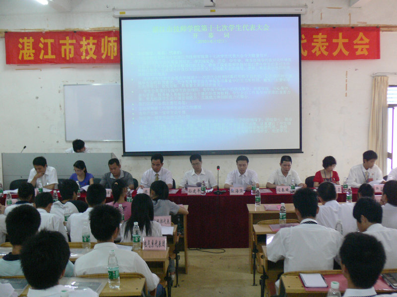 2010年6月12日上午,学院多媒体教室座无虚席,湛江技师学院第十七次学生代表大会在此隆重举行。学校副院长孙建平、学生处廖振处长、闫春羲副处长,团委张海强书记、李淑霞副书记以及学生代表187人参加了本次大会。