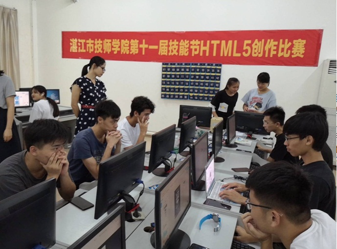 比赛前期准备工作从3月初开始,在电子商务小组梁丽娟组长的带领下,小组成员共同讨论并确定技能竞赛的形式及主题,以及确定了比赛的评分标准。通过与电子商务专业各班主任的共同动员下,报名学生人数共21人。其中15级电子商务3+2班报名人数4人;16级电子商务3+2班4人;17级电子商务高级班2人;18级电子商务班11人。比赛之前,各参赛选手提前为比赛做好充分的准备。包括HTML5制作工具的选择及账号的注册以及收集了HTML5创作的素材,如:校园的拍摄等。