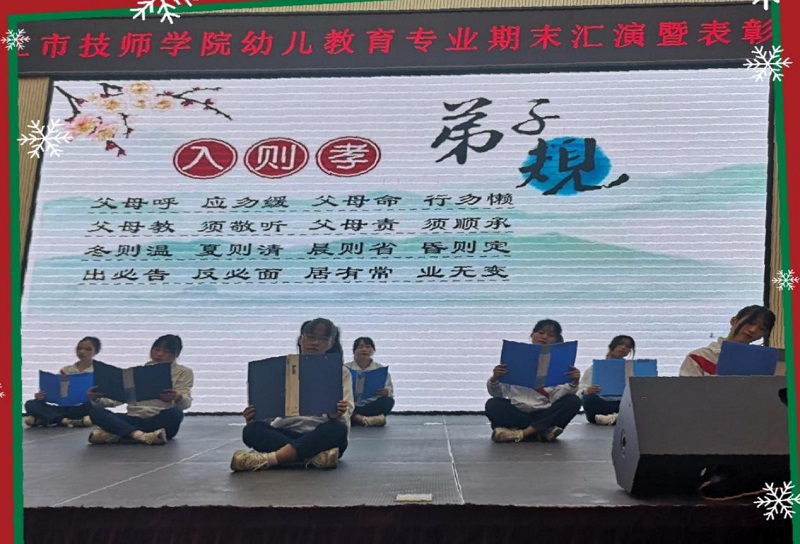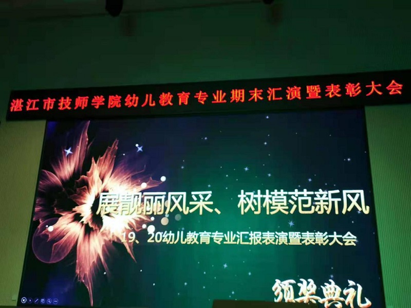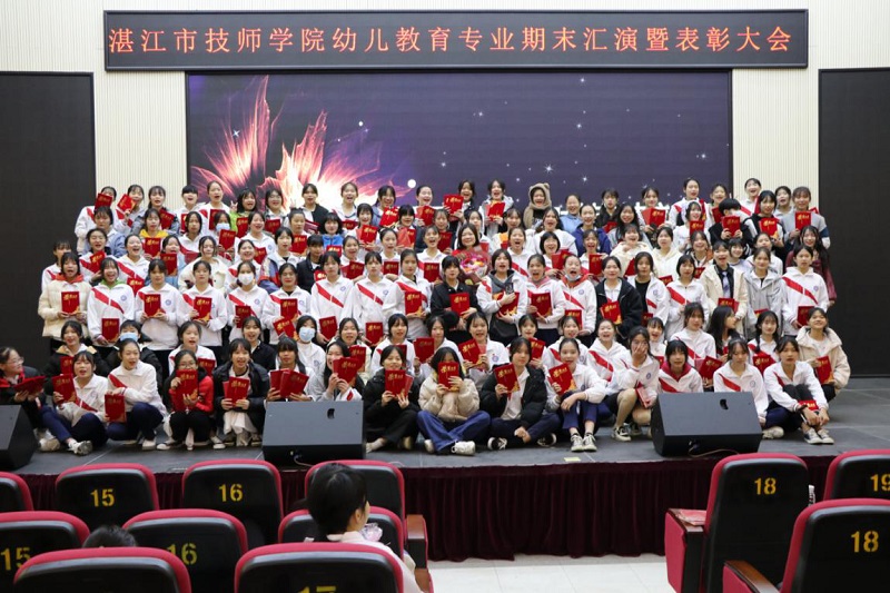 1月11日上午,湛江市技师学院19、20级幼儿教育专业216名学生在学校学术报告厅举行以“展靓丽风采、树模范新风”为主题的期末汇演暨表彰大会。学校党委书记、校长江宇静,副校长罗斌,校长助理廖振,教务处处长杨红强与信息技术系全体领导、老师们欢聚一堂,一起见证学生的快乐成长。
