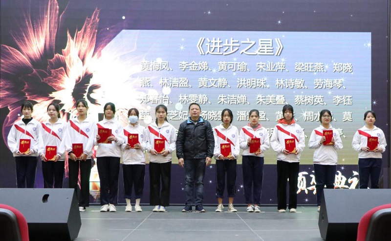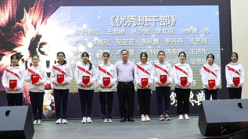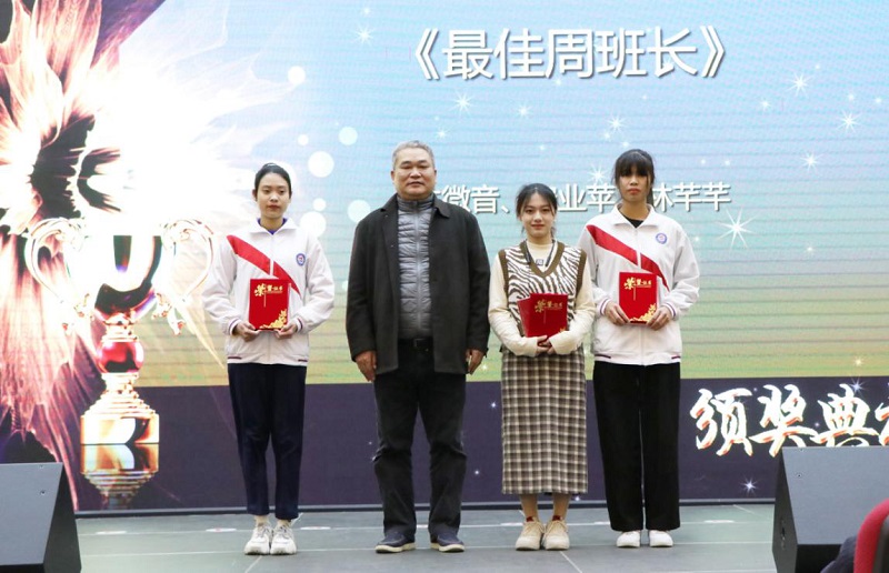 对陈海珠等30名“三好学生,欧阳艳红等33名优秀班干部,林微音等3名最佳周班长,杜诗妮等15名明星舍长,黄梅凤等30名进步奖,许丹等26名积极分子,陈玉珠等22名全勤奖予以表彰。