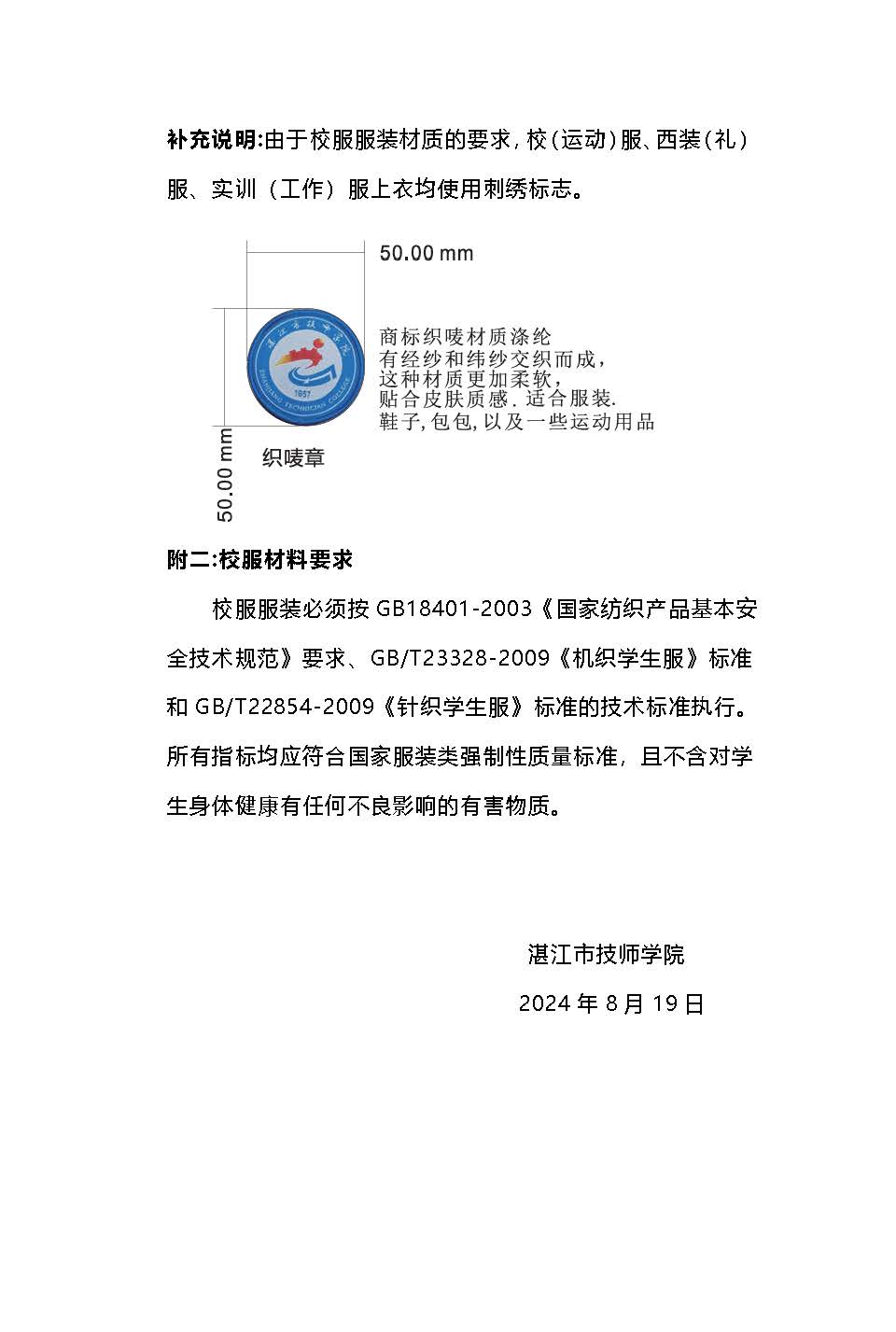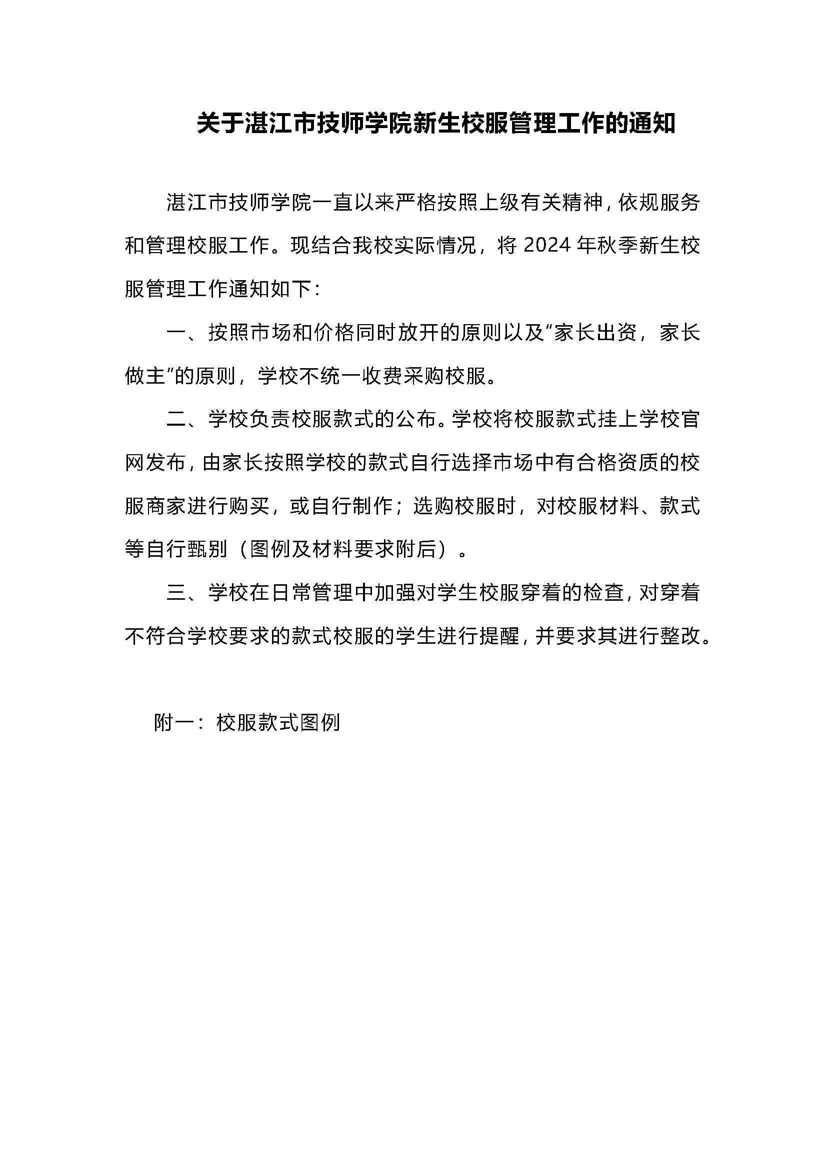 关于湛江市技师学院新生校服管理工作的通知
