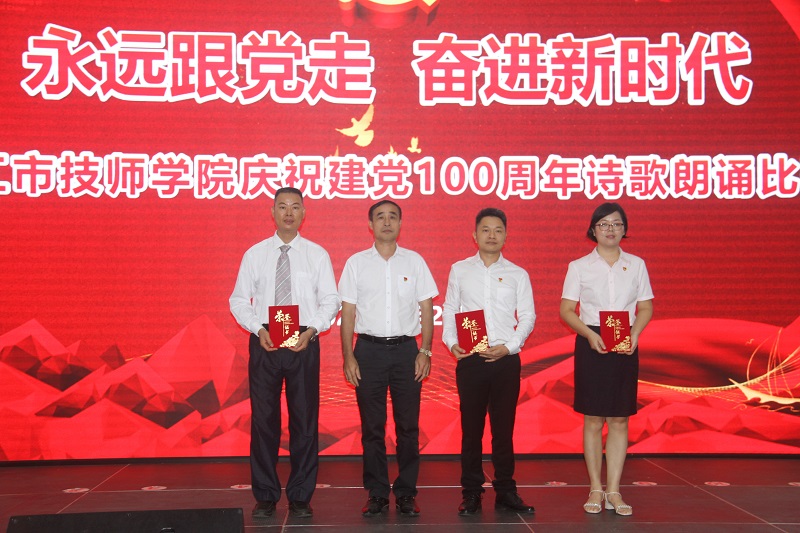 100周年,更好推动党史进校园活动,6月24日下午,我校在新教学综合楼学术报告厅举行庆祝建党100周年诗文朗诵比赛决赛。学校党委书记、校长江宇静,副校长陈钢华,副校长罗斌,校长助理廖振出席并观看了决赛。